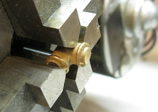Then the fourth jaw is snugged down, and the piece is faced off.