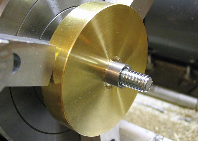 I started with a piece of 2" dia brass, about 5/8" thick. I faced